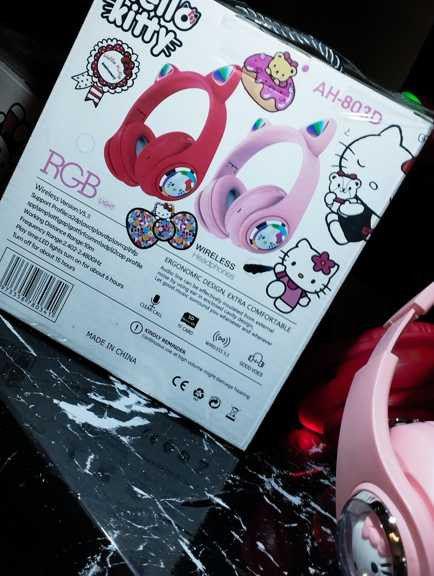 هدفون بلوتوثی hello kitty مدل AH-803D آرجی بی دار